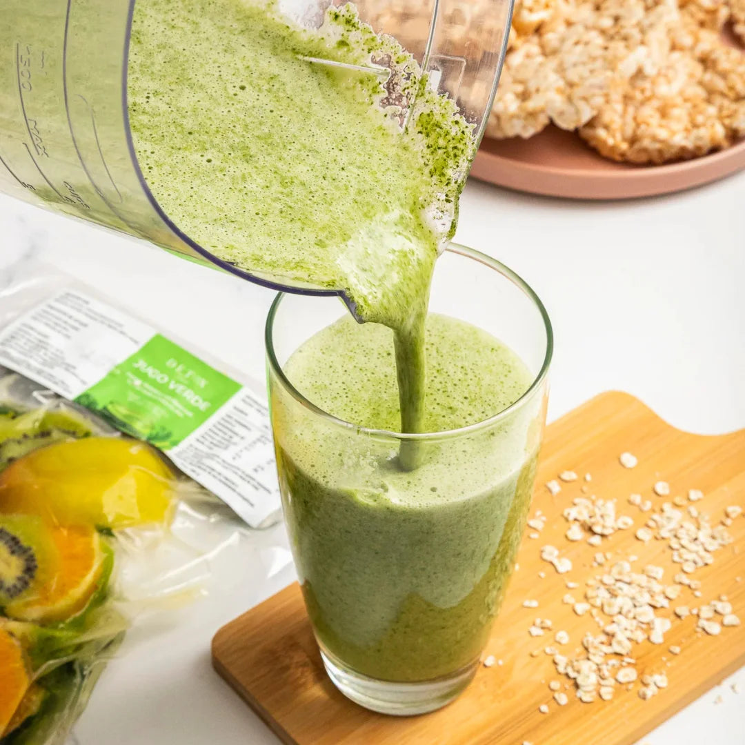 ¿Por qué no lo cuelo? Porque ahí está la magia. No vendemos "agua con color", vendemos fruta y verdura real. La fibra es lo que te da saciedad y regula tu azúcar. El colador dejalo en el cajón
